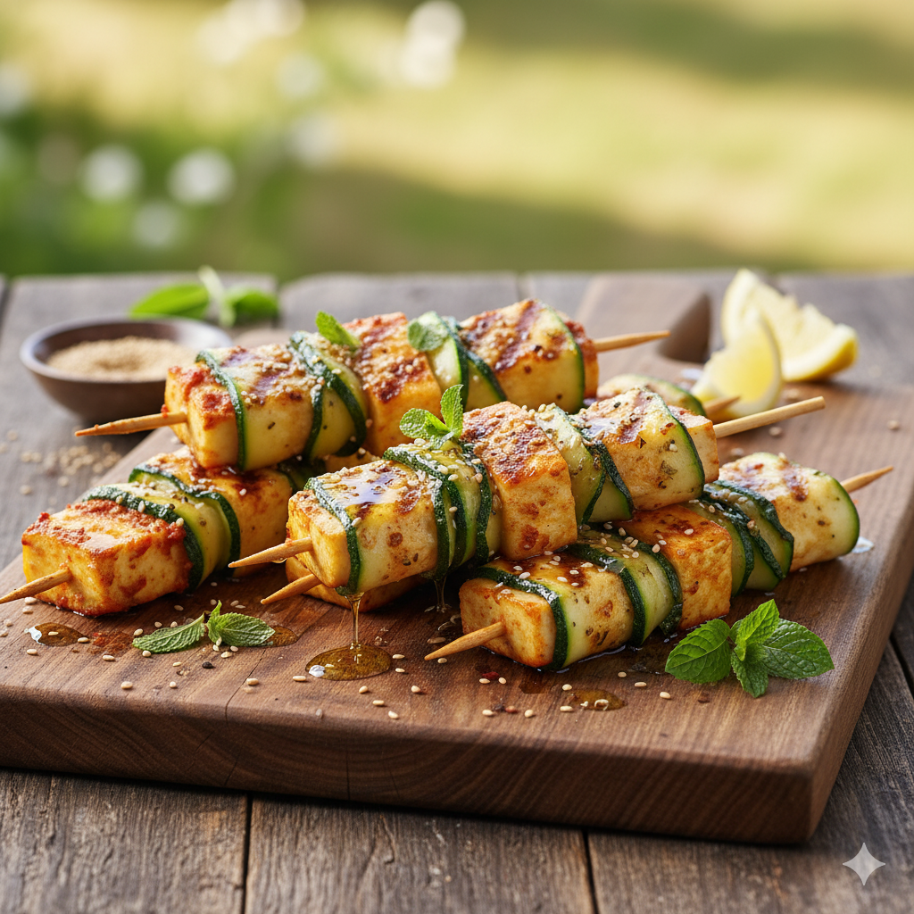Halloumi ist genial zum Grillen – hoher Schmelzpunkt, goldene Kruste, weiches Inneres. Meine Zucchini-Halloumi-Spieße überraschen selbst Fleischfans!